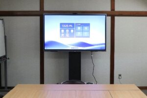 当所では、会員事業者の皆様の業務効率化・働き方改革を支援するため、セミナー開催やWeb会議等の際にご活用いただける、オールインワンミーティングボード「MAXHUB(マックスハブ)」を4階・5階会議室に導入いたしました。貸会議室をご利用の会員様は、無料で最新設備をご利用いただけます。
